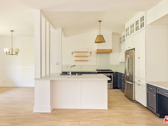 Just moments from the sand and the chic boutiques and cafes of Montana Avenue, this fully remodeled residence blends elevated design with a relaxed, coastal sensibility in one of Santa Monica's most coveted neighborhoods. Bathed in natural light and defined by soaring ceilings, the open-plan layout flows effortlessly from the formal entryway to the living room with a cozy gas fireplace and access to a spacious covered balcony with lush treetop views. The dining area connects to a show-stopping kitchen appointed with quartz countertops, premium stainless steel appliances, custom cabinetry with ample pantry space, and designer finishes that balance style with everyday function. The generous primary suite is a true retreat, featuring high ceilings, dual closets, balcony access, and a spa-inspired bathroom with a soaking tub, glass-enclosed shower, dual vanity, and exquisite custom tilework. A secondary bedroom with its own balcony and walk-in closet offers flexibility for guests or a home office. Additional highlights include a built-in workstation, in-unit washer/dryer, designer lighting, and bespoke millwork throughout. Set within a charming, well-maintained community, residents enjoy controlled access, secure side-by-side parking for two vehicles, guest parking, and resort-style amenities including a sparkling pool and spa surrounded by lush landscaping. The result is a rare lease opportunity where modern elegance meets the best of Santa Monica coastal living.