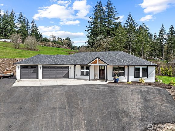 Come see this beautiful custom built 2022 home situated on 2.75 acres just outside of Kalama City Limits and within minutes of I-5! Home is a 2403 sq ft 3bd 2.5ba with an office. Features include; quality fixtures, SS appliances, quarts counters, spacious living/kitchen/dining area and a luxurious primary en-suite with heated floors, walk in shower, and soak tub. Outside you will enjoy a large covered porch, Fire pit, Hot tub, and a low maintenance landscape. Black top driveway and lots of room for parking. Home has also been approved for an ADU. Seller installed a 4 bedroom septic to allow for an ADU unit. This home has so much to offer and is ready for you!