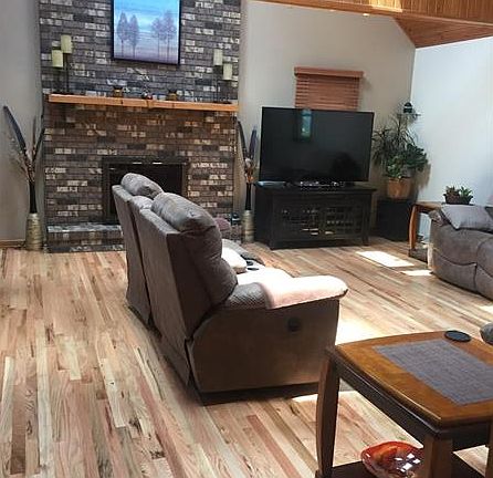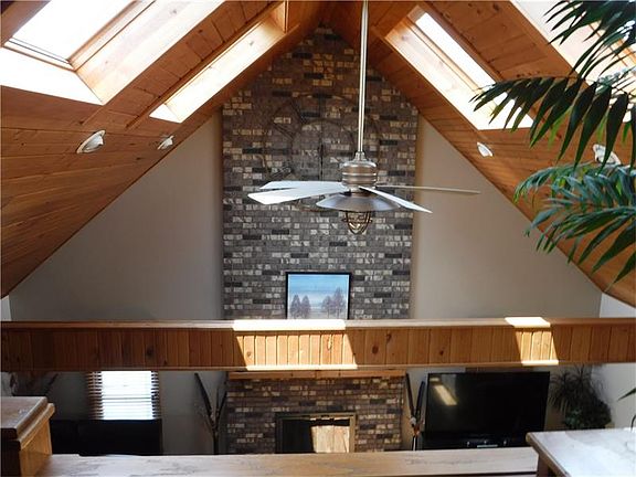 Immaculate and totally redone inside and out! Cathedral living room with beautiful gas glass pit fireplace. Beautiful Skylights let in tons of natural light with solar powered blinds. Newer 2006 kitchen with Alloc floor and pantry. Tons of hardwood flooring and trim throughout. New Roof. Clean garage heated and air conditioned. New wide wooden blinds. Relax on your huge front porch. Master bedroom with walk in closet its own patio access and laundry. Tons of outside storage under both porches. Plenty of attic storage. French Drains in and out and sump pump. Furnace and AC 2012. 60 gal hot water heater. Meticulous landscaping.