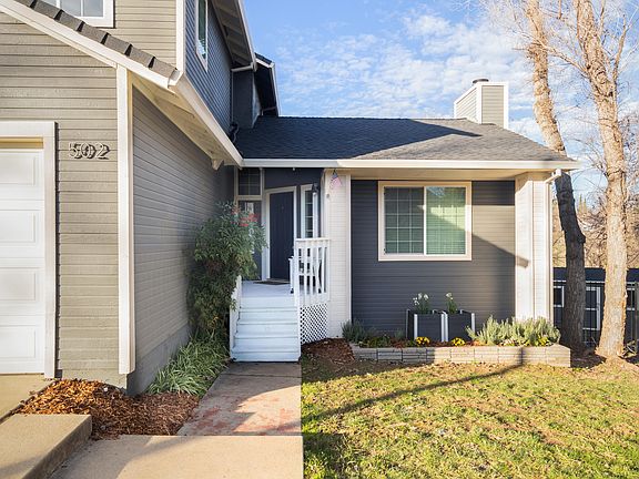 What an immaculate find! Can someone say location?! Nestled at the end of a peaceful cul-de-sac backing to natural trails, this charming 3-bedroom, 2.5-bathroom home boasts exquisite curb appeal with an open living concept offering the perfect blend of comfort, convenience, relaxation, and outdoor recreation. Enjoy evenings by the wood-burning fireplace and cooking in a modern kitchen with stainless steel appliances + pantry. Spanning approximately 1,390 square feet on a fully fenced generous 16,117sf greenbelt lot w/ seasonal creek, ADU potential, and endless possibilities, this centrally located gem off of Hilltop Dr. in North Redding is only minutes from shopping, downtown, the freeway, and the scenic Sacramento River Trail. 220V on separate panel in garage for EV charging/hobbyists. Large shed on concrete foundation in the back. Why You'll Love This Home: