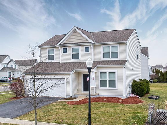 M/I built Rockwell Model built in 2007, offering a 2 story frame home situated on a secondary street in Scotts Farms. A majestic home, offering 4 bedrooms, 2.5 baths, w/ recently installed new, engineered laminate flooring throughout main floor, spacious living. Gorgeous kitchen w/ quartz counters, large island, white woodwork / doors, honey oak cabinets, open to a large cozy family room, beautiful master suite, walk-in closet, soaking tub & stand-up shower. Full basement w/ ample storage ready for future finishes. Includes a whole house water purification system, fully wired for technology Beautiful yard / corner lot. In proximity to Elementary, sidewalks, kids park, shelter houses, and recreational courts. Move in ready & Easy to see.