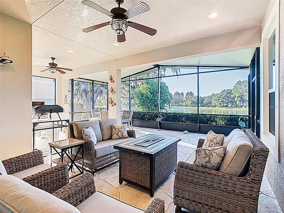 Beautifully designed & excellently maintained OPEN CONCEPT Siena model built in 2017 on a WATER LOT in Solivita’s MOST desirable Treviso subdivision. 8’ doors and 5½” baseboards throughout. This home is exceptionally energy-efficient with double-pane, vinyl-frame Low-E windows & sliders as well as Icynene insulation in the attic for year-round comfort & efficiency. Plank tile flooring flows through the main living areas to include the primary suite, bathrooms, laundry room & flex room/den. Carpeting is in bedrooms 2 and 3. CROWN MOLDING and TRAY CEILINGS are in the main living areas to include Kitchen, DR, Great Room & Foyer. HIGHLY upgraded lighting fixtures & ceiling fans enhance all major rooms. The kitchen and bathrooms showcase quartz countertops, while plantation shutters, push/pull cellular blinds throughout the home add both privacy and style. Dining Room & Great Room sliding doors have cellular accordion vertical pull blinds. The front entryway is screened and the front door has a leaded-glass insert which allows ambient light. The Great Room's MUST SEE feature is the CUSTOM ENTERTAINMENT CENTER with a 6' wide remote control ELECTRIC FIREPLACE, Floating Shelves, Wall Tile, TV mount, a Denon S970J receiver & a subwoofer that will remain w/ the surround-sound ceiling speakers. The GOURMET KITCHEN has QUARTZ counters, a tile backsplash, recessed, pendant & under cabinet lighting as well as a SOLAR TUBE which provides natural light throughout the kitchen area. STAINLESS STEEL appliances include built-in double ovens, cooktop, microwave & a four-door LG refrigerator (new June 2024) with a glass-viewing panel. 42" upper cabinets have crown molding, light rails, glass cabinet door & wine rack. Lower cabinets have DOUBLE pull-out drawers. The primary suite has amazing views of the pond through triple windows with push/pull cellular blinds. There are two Walk-in Closets. One boasts a closet organizer system. The primary bathroom features a custom shower with smooth rock flooring, seamless glass, bench seating, upgraded lighting, plantation shutters, linen closet, dual raised vanities with 2 sinks and a comfort height commode. The 2nd & 3rd Bedrooms boast walk-in closets & plantation shutters. Bedroom 3 has recessed lighting & a closet organizer. The Den/Flex room has scenic water views, recessed lighting, pull-down blinds & a built-in locking wall unit with bookshelves. The masterpiece of this home is the extended, screened & covered lanai with a cathedral ceiling roof that provides approximately 550 sq ft of relaxing outdoor living & spectacular water views. It showcases a custom-colored Sundek hand scored, not stamped, concrete floor & a built-in 34" Whistler BBQ grill with side burner & granite counter. It also has Klipsch Outdoor Speakers, Recessed lighting & two ceiling fans that round out this beautiful space. Spacious Laundry Room with sink. Cabinetry & wire racks for storage. Washer/ Dryer are included. Additionally the home features a Pelican whole-house water softener system. Exterior was painted in November 2024. "Ring-like" doorbell will remain. This impeccably maintained home combines elegant finishes, thoughtful upgrades, and peaceful pond views—offering truly exceptional Solivita living.***Solivita is an active adult 55+ community located in Kissimmee, Florida. It is approximately 50 minutes from Disney World & the Orlando International Airport. Solivita has a total of 5,470 homes. MAKE THIS YOUR HOME TODAY!