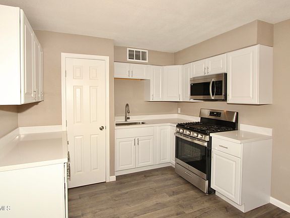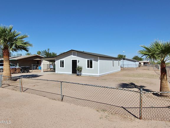 Beautifully remodeled 3 br 2 bath home completely repainted inside and out. New Kitchen and Quartz counter tops, New laminate floors and new carpet in the bedrooms. New appliances, New gas oven and built in microwave with eating space in the kitchen. New Roof, New windows and doors, New AC, all New ceiling fans and fixtures, toilets and sinks. Separate locked room for water heater and washer and dryer hook ups only. Chain link fenced with extra parking for cars, boat or RV on a corner lot. A great like new home in the city of Eloy!