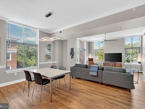 Move-in ready 2 bedroom, 2.5 bath condo with office at The Broadway on the top floor with 10 foot ceilings, 2 garage parking spaces and separate storage space! Situated on a light-filled corner of the building with luxury vinyl plank floors, crown molding, in-unit laundry and wide-width blinds throughout. Enjoy 2 en-suite bedrooms with loads of closet space along with an open dining room and living room with gas fireplace and private balcony! A gourmet kitchen comes complete with granite counters, recessed lighting, stainless steel appliances and breakfast nook. All this along with The Broadway amenities like fitness room, courtyard greenspace and party room. Just one mile to West Falls Church metro and I-66! Falls Church City Schools, shops, dining, entertainment and weekly farmers market just up the street!