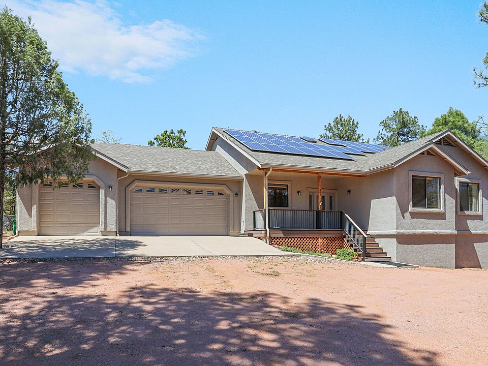 Mountain living at its best! This well-designed home offers a spacious layout with a walk-out basement, huge storage space, and an interior workshop. Enjoy a nearly 1-acre lot from your private rear deck. Features include solar panels to be paid off by seller at closing with title and warranty transferred to buyer, private well + city water, new appliances, garden sheds, and a 4-car garage. Perfect for full-time or seasonal living. Livestock and horses allowed with simple city permit. This home features an established garden area, new roof put on in 2023, new flooring on the main level and No HOA!