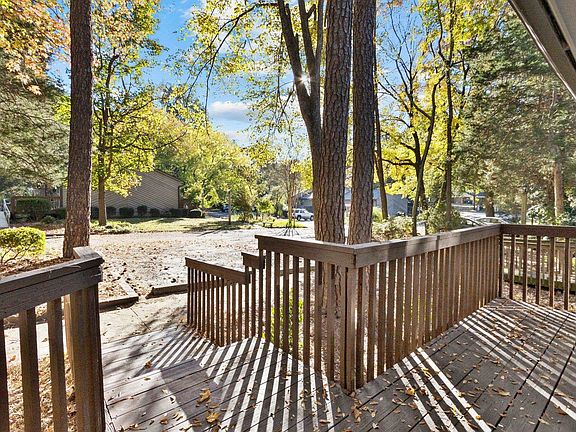 Jewel in the heart of Carrboro! Complete renovation of this light-filled end unit townhome makes it move-in ready! Luxury vinyl flooring throughout, with tile in the bathroom and smooth ceilings. Kitchen features soft-close cabinets and drawers, pantry wall cabinet, microwave nook, range hood, stainless steel appliances, and quartz counters. Bathroom includes double vanity and walk-in shower with frameless glass and tile enclosure. Newly rebuilt deck, new blinds, new light fixtures, new screen doors, new door hardware, new interior paint, no popcorn! Outside, find newly planted landscaping and pinestraw surrounding your new home. Enjoy cozy evenings at home, hop on the bus to UNC, or stroll to downtown Carrboro. Photos are virtually staged. Ask about financing incentives with preferred lender!