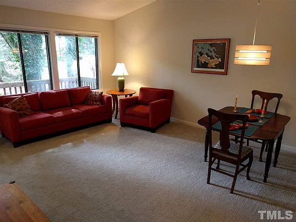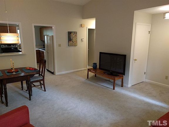Beautiful one level contemporary townhouse end unit in a quiet, safe neighborhood, and only a short walk to bus stop. It's an easy, level bike ride to downtown Carrboro and to UNC. This home has a spacious LR/DR with soaring ceiling open to kitchen, 2 BR with ceiling fans, and a newly renovated bathroom with ceramic tile floor. New carpet and fresh paint throughout. Front/back decks, HVAC, W/D, DW. Great investment property. HOA dues only $115/month.
