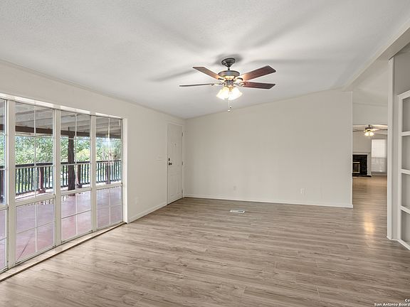 Sit out on your large front porch and enjoy the beautiful Hill Country sunsets. This 3 bedroom/2 bath home has two separate living rooms on over 1/2 acre. The house has all new laminate flooring throughout. Great kitchen with new cabinets, solid countertops and backsplash. The backyard is private with large patio and has two storage sheds. Come see today!