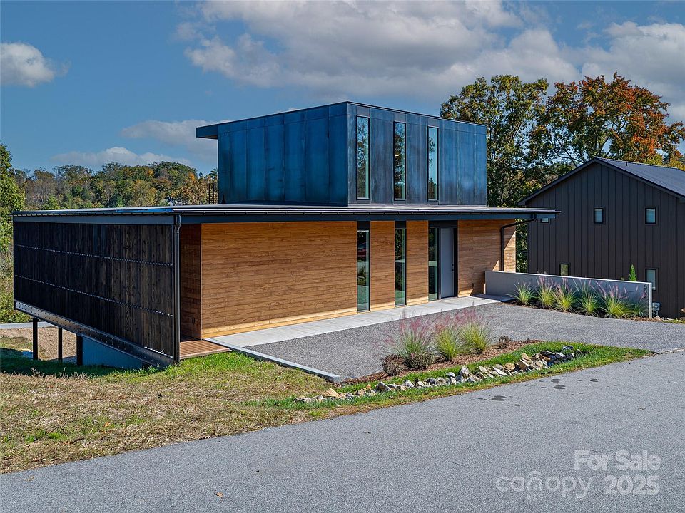 Welcome to your modern sanctuary by North Hill Homes in Olivette Riverside Community and Farm—just seven miles from vibrant Asheville! Nestled on a peaceful corner lot, this custom-crafted home features energy-efficient living, Thermory® and steel siding, oak floors, an inspired chef’s kitchen with quartz counters and steel backsplash, plus expansive living spaces bathed in light. Enjoy al fresco dining on the deck or unwind on the covered front patio. The main-level suite, private primary upstairs with balcony views, and finished lower level offer comfort for every lifestyle. Convenient parking options include a main-level driveway and a lower-level single-car garage. Olivette’s 366-acre community delights with hiking trails, a riverfront park, dog park, private island, organic farm, and more. Designed for beauty, ease, and connection to nature, this is refined mountain living at its best. HERS Rating of 48! Video & Matterport Walk Thru Tour Available.