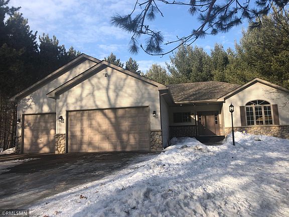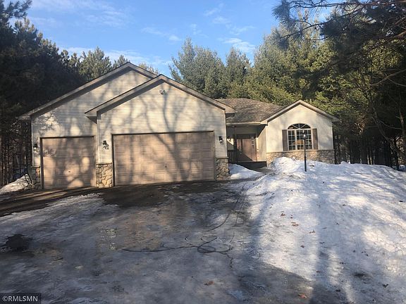 Nestled in the woods is this beautiful 4 bdrm+office/3 bath, completely finished, walk-out rambler sitting on 5 very private acres with 100's of mature pines, oaks, etc. Secluded yet easy access to I35. All living facilities on main level including laundry & 3BR/2BA. Living room has fireplace, 2 main level BR's have jack-n-jill style setup. New roof, new appliances, new quartz countertops, new A/C in 2020, & new furnace in 2019. Main floor living with 9' ceilings, large master ensuite with whirlpool tub, & double vanity, Lower level has the 4th BR and an office/flex room, also 3rd full bath and large storage room. Family room in lower level is huge 26x23 with up-north cabin feel, built-in bar, fireplace with fieldstone surround, tongue-n-groove ceiling and wainscoting. 3 car insulated & heated attached garage. Located on dead-end paved road, fenced yard, & great spot for future outbuilding. This is a must see!
