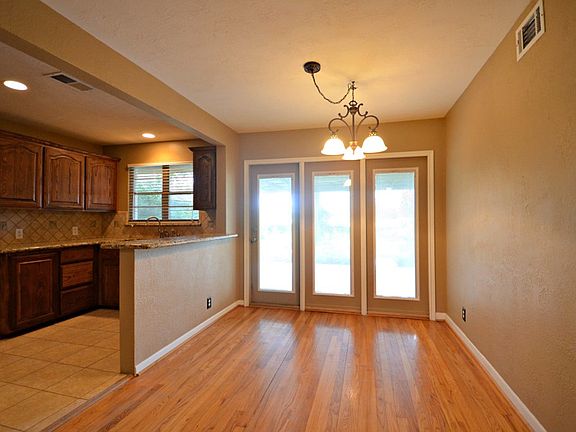 This wonderful and updated three bedroom home is located in PNG schools and is spotless. Custom kitchen with NICE appliances, granite, a breakfast room, and separate dining room (would make a great office space too). The covered patio makes it nice to sit outside and has a shed for additional storage. You'll love the wood floors, the HUGE utility room, and that this home comes with the refrigerator, washer, and dryer. Snag this property today.