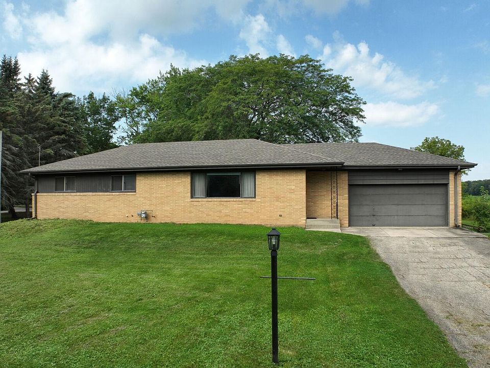 Solid 3 bedroom brick ranch on an acre offers new in 2024: roof, furnace, central air and water heater. Huge living room, dining room. Nice size kitchen with lots of cabinetry. House has hardwood floors, full size windows in basement, patio, apple and pear trees and a 30 X 40 outbuilding! Dead end street!