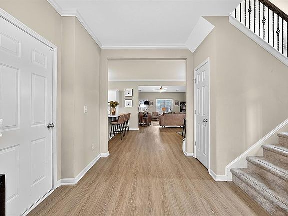 Step inside this updated home featuring a main-level primary suite and soaring ceilings in the living room! The bright and open floor plan is perfect for gatherings, while the kitchen is highlighted by elegant quartzite countertops. Fresh new flooring throughout the first floor adds a modern touch and enhances the home’s welcoming feel. Upstairs, you’ll find three additional spacious bedrooms—ideal for family, guests, or a home office. Step outside to a private backyard designed for relaxing or entertaining. Conveniently located near schools, shopping, dining, and major highways. This move-in ready home is waiting for you—schedule your showing today!