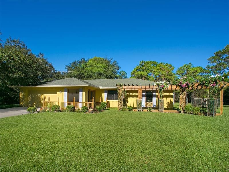 The quintessential country home nestled on a quiet, tree lined street in Myakka Valley Ranches. Meticulously maintained, this 4 bedroom and 3 full bath home is perfectly positioned on almost 6 acres of oak spattered pasture. The winding driveway reveals a bright and sunny facade complete with a gorgeous pergola blanketed with flowering vines. Cedar siding completes the country look with a front porch that is perfect for nature watching. Inside is an inviting foyer that leads to the living area with french doors to the caged pool and a wood burning fireplace. Updated features include a new a/c unit in 2011, water softening system and 2 hot water heaters. A detached barn is ready for your vision and use. With the Myakka State Park as your neighbor, the community is full of deer and birds of every type....even colorful peacocks! One of the last true equestrian finds, this neighborhood of like minded souls enjoy being within minutes to Siesta Key beaches and the cultural amenities of downtown Sarasota.