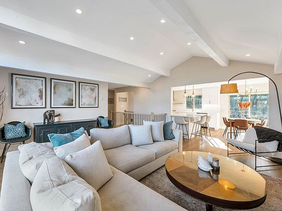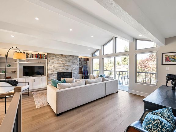 WEST COAST INSPIRED 5 bed, 3 bath home in a quiet Eagle Heights cul-de-sac with beautiful mountain views from the living room! Enjoy the open-concept kitchen remodel with all-new Café appliances, a new bathroom with laundry, and a spacious living room featuring vaulted ceilings, a wall of windows, and slider to the front patio. Entertain on the new large private deck off the kitchen w natural gas H/U. New flooring throughout. Primary suite offers modern ensuite and walk-in closet. Large den for office, kids’ zone or easily connect to suite for in-laws. 2-bed garden suite with laundry and patio. Cozy gas fireplaces for winter, A/C for summer. Private newly fenced yard with large patio. Double garage with cabinets, sink, fridge & EV charger. High Knoll & Nicomekl trails just 2-mins away!!