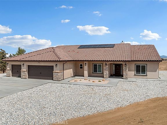 Welcome to this custom-built home in the South foothills of Phelan, less than 1.5 miles from schools and shopping, with breathtaking mountain views and convenient access to the paved intersection of Johnson Rd. and Neilson Rd. Built in 2024 and nestled on a spacious lot in Snowline School District, this home combines thoughtful craftsmanship with energy efficiency and modern comforts. Inside, you’ll find a bright open-concept floor plan with a breakfast nook, formal dining area, and a chef’s kitchen featuring a commercial style Z-Line 36” 6-burner gas range with electric convection oven, stainless steel appliances, Ashwood shaker cabinets with soft-close drawers, and sleek quartz countertops. A large pantry adds extra storage. The living area is anchored by a custom wood-burning stove with a flat rock hearth, creating the perfect spot to gather on cool winter nights. The private master suite is a retreat of its own, complete with a soaking tub, tiled shower, toilet room, walk-in closet, and access to its own 27x15 covered patio. Two additional bedrooms offer comfort with carpeted flooring, while the rest of the home features durable custom tile and flat black fixtures for a modern touch. Designed with efficiency in mind, this property includes paid off solar panels, an owned propane tank, a Culligan water softener, RO drinking water system, tankless water heater, upgraded stylish prohibition era wood grain weather resistant front door, and full-perimeter gutters draining into underground drainage. Cooling and airflow are enhanced with ceiling fans throughout. Outdoor living is a highlight with a 15x50 covered back patio off the living room, complete with propane connection for a grill or outdoor kitchen, making it perfect for entertaining. The 3-car garage is oversized at 835 sq. ft., with insulated doors, LED lighting, and ample storage. With its terra-cotta tile roof, custom stonework, and high-end finishes inside and out, this home is truly move-in ready—offering peace, privacy, and timeless style in a neighborhood of other custom homes.