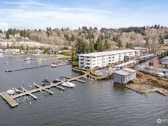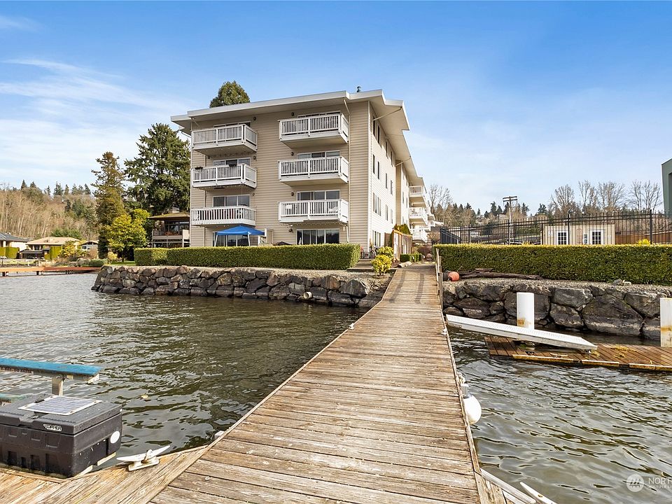 EXCEPTIONAL WATERFRONT LIFESTYLE on Lake Washington! This ground floor 2 bed, 2 bath condo is complete with a kitchen that is integrated into the open-plan living room and dining area which flows out to the spacious covered balcony overlooking Lake Washington serving as the ideal spot for a BBQ or some R&R. The building features a shared dock for owner use with water access, a waterfront pool, indoor sauna, close proximity to VMAC & more! Right outside the secured parking gate, you can walk, jog, or bike miles of maintained Eastside Trail that runs from Bellevue all the way down to Coulon Park & Renton Landing. Conveniently located near shopping/restaurants, Top Golf & easy freeway access! Includes a covered parking space & storage unit.