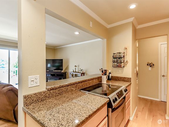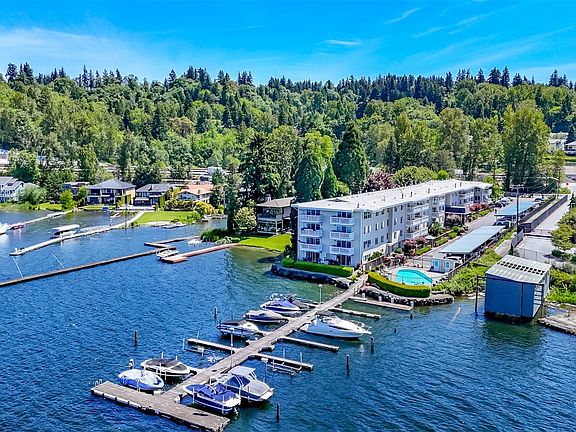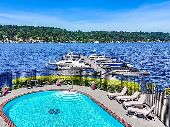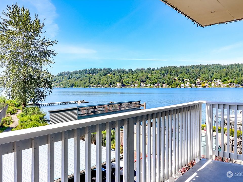 This 2 bedroom condo has everything! Gorgeous views, amenities and location! Misty Cove condominiums are located on the shores of Lake Washington, complete w/pool, sauna, shared waterfront dock and lake access! Gated setting adjacent to the Seahawks Training facility & the Eastside Trail that runs 14 miles from Bellevue along the east shore to Coulon Park & Renton Landing. Perfect for outdoor living - running, biking or walking. This beautiful 2 bed/ 2 bath unit features engineered hardwood floors, granite counters, newer paint & updated bathrooms. Unobstructed water views from the living room, both bedrooms & spacious deck. Includes assigned parking space. Elevator for easy access – no stairs necessary.