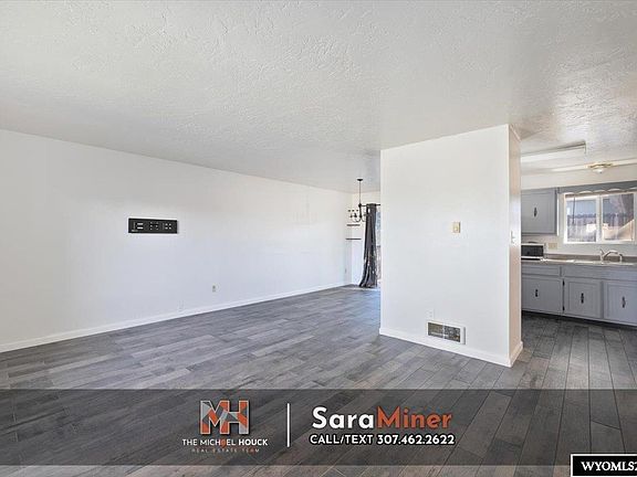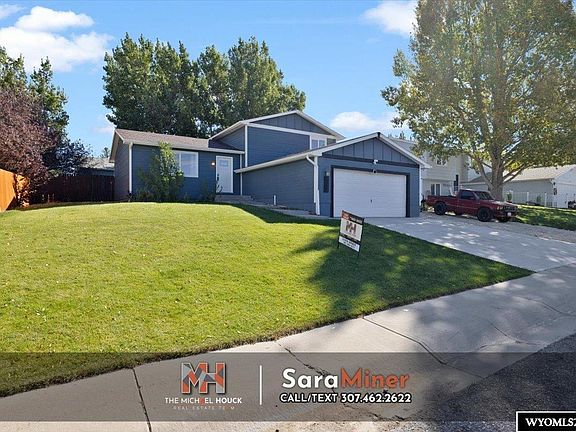 Welcome home to this charming and move-in ready 3-bedroom, 2-bath property with a 2-car attached garage and RV parking. The home features fresh exterior paint, updated flooring, and a bright open layout. The kitchen offers stainless steel appliances and flows seamlessly into the dining area. The upper level is three bedroom with a bathroom attached to the primary bedroom. The lower level includes a cozy fireplace and bonus living space. The a spacious back deck is perfect for entertaining or relaxing outdoors. Enjoy a fully fenced yard with mature trees for shade and privacy. Call/text The Michael Houck Real Estate Team at 307-462-2622 for more info!
