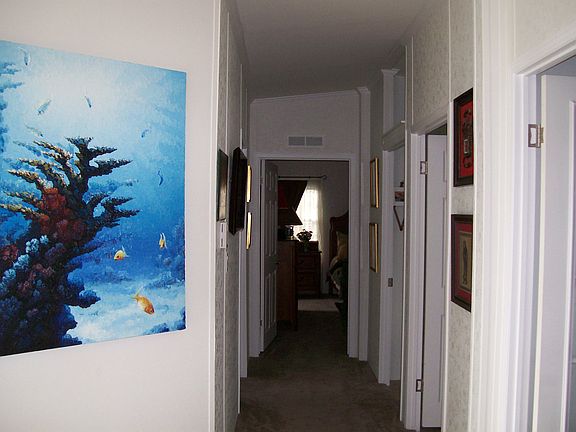 Beautiful two bedroom, two bath with den, utility room and large utility closet. Large great room with island in kitchen, drop lights, vaulted ceilings, crown moulding, ALL the designer upgrades seen at "market shows". Large porch with private driveway. Scenic views from full front porch. Two lake views on a corner lot, in a quiet neighborhood. Great neighbors. Fantastic vacation home, or peaceful retirement community. Not Furnished!