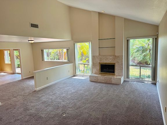 Welcome to this bright and spacious 4 bedroom, 3 bathroom home in the heart of Canyon Ridge! Located minutes off Governor Dr exit of the I-805 freeway. Home has new paint and carpet throughout with new tile flooring in the primary bathroom. The layout features an open large kitchen and family room with a fireplace. The kitchen flows into the dining and spacious living room with vaulted ceiling and fireplace perfect for gatherings and entertaining guests. One bedroom is conveniently located on the first floor ideal for guests or a private home office. Upstairs, you'll find a primary en-suite that has vaulted ceiling with a balcony, plus two additional bedrooms and one full bath. Step outside to a vibrant backyard with beautiful landscaping. Enjoy the convenience of nearby parks, schools, shopping, dining and the 52 freeway.