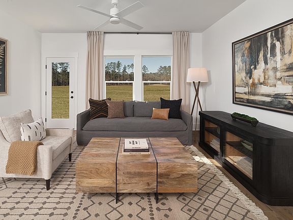 The Palmetto villa combines smart design with easy living in an attached home duplex format. A welcoming front porch creates the perfect spot to start your day with a morning coffee or unwind with a good book in the afternoon breeze. Inside, the thoughtfully planned layout makes the most of every square foot, where the well-appointed kitchen with breakfast bar flows seamlessly into a bright family room - an ideal space for hosting game day gatherings or enjoying quiet evenings with your favorite shows. The private primary suite serves as a peaceful retreat with a spa-like ensute, offering optional luxury bath upgrades. A second bedroom and full bath provide comfortable space for family or guests or the perfect setup for a productive home office.