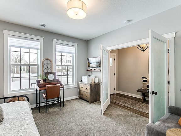 Exceptional in every way, this single-level home surpasses new construction standards with a myriad of upgrades. Enter to discover power blinds, new lighting fixtures, fresh paint and added features to the fireplace wall. Bask in the natural radiance pouring through the expansive wall of windows, illuminating the spacious layout. The kitchen, a culinary haven, features a sizable island, stainless-steel appliances, a walk-in pantry, and ample storage space. Enjoy two bedroom oasis featuring a luxurious walk-in shower, a separate soaking tub, a generously sized closet, and double sinks, ensuring a serene escape. Step outside to the private concrete patio, conveniently accessible from the kitchen and dining area. With no lawn or snow responsibility, experience the comfort of single-family living with townhome convenience. Schedule your viewing today!