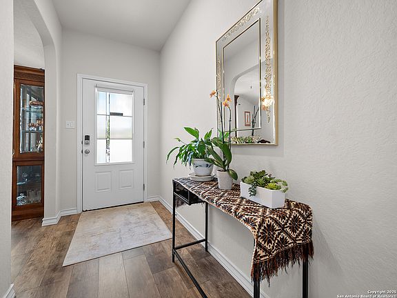 Open House: Sunday, 12/7 from 1 pm - 4 pm! This beautifully maintained 2021 one-story home in the Langdon community by DR Horton comes with all the modern features of new construction, plus thoughtful extras you won't often find included. Located near the front of the community for quick in-and-out access, this home is also just moments from resort-style amenities including pool, splash pad, clubhouse, fitness center, dog park, and more! The popular Brown floor plan offers 3 bedrooms, 2 bathrooms, and 1,641 sq. ft. of open-concept living with high ceilings and abundant natural light. A welcoming foyer opens to a versatile formal dining room, perfect for entertaining or a home office. The modern kitchen showcases granite countertops, gas cooking, stainless steel appliances, and a large island with breakfast bar overlooking the spacious living area. The private primary suite features dual vanities, soaking tub, walk-in shower, enclosed water closet, and a generous walk-in closet. Two additional bedrooms provide flexibility for family, guests, or workspace. Durable laminate wood-look flooring extends through the main living areas, with carpet in bedrooms and tile in baths and the dedicated laundry room. Enjoy outdoor living on the covered patio and backyard accented by fruit trees (fig, pomegranate, and orange), supported by full yard irrigation for easy care. This home also includes smart home technology for modern convenience, along with refrigerator, owned water softener, window treatments, and keyless entry - all included and ready from day one. Peace of mind continues with a transferable 10-year builder warranty. Located within Judson ISD, including the newly opened Cibolo Creek Middle School nearby. Conveniently positioned near Loop 1604, Hwy. 281, Stone Oak shopping and dining, medical facilities, TPC Golf Course, JW Marriott Resort & Spa, Randolph AFB, and Fort Sam Houston. Schedule your showing today to experience the convenience, condition, and location firsthand!