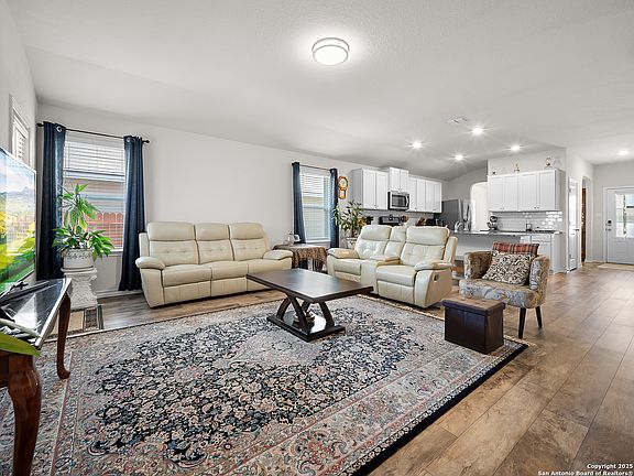 Why wait on builder timelines when you can move into this beautifully maintained 2021 one-story home in Langdon - available now with all the modern features of new construction, plus thoughtful extras you won't often find included. Located near the front of the community for quick in-and-out access, this home is also just moments from resort-style amenities including pool, splash pad, clubhouse, fitness center, dog park, and more! The popular Brown floor plan offers 3 bedrooms, 2 bathrooms, and 1,641 sq. ft. of open-concept living with high ceilings and abundant natural light. A welcoming foyer opens to a versatile formal dining room, perfect for entertaining or a home office. The modern kitchen showcases granite countertops, gas cooking, stainless steel appliances, and a large island with breakfast bar overlooking the spacious living area. The private primary suite features dual vanities, soaking tub, walk-in shower, enclosed water closet, and a generous walk-in closet. Two additional bedrooms provide flexibility for family, guests, or workspace. Durable wood-look flooring extends through the main living areas, with carpet in bedrooms and tile in baths and the dedicated laundry room. Enjoy outdoor living on the covered patio and backyard accented by fruit trees (fig, pomegranate, and orange), supported by full yard irrigation for easy care. This home also includes smart home technology for modern convenience, along with refrigerator, owned water softener, window treatments, and keyless entry - all included and ready from day one. Peace of mind continues with a transferable 10-year builder warranty. Located within Judson ISD, including the newly opened Cibolo Creek Middle School nearby. Conveniently positioned near Loop 1604, Hwy. 281, Stone Oak shopping and dining, medical facilities, TPC Golf Course, JW Marriott Resort & Spa, Randolph AFB, and Fort Sam Houston. Ask about available financing incentives and schedule your showing today to experience the convenience, condition, and location firsthand!