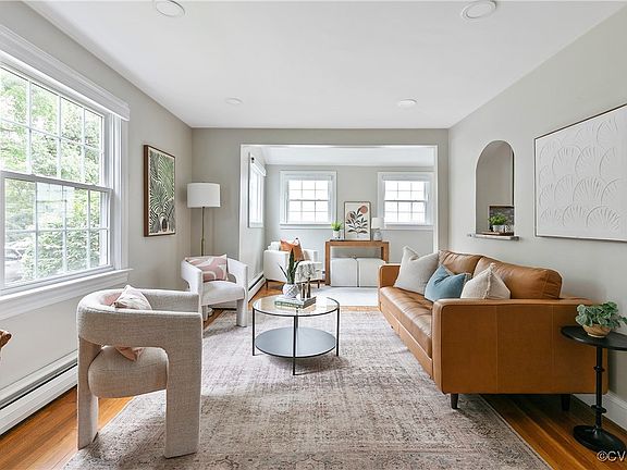 Welcome home to this charming cape in Westover Hills, one of Richmond’s most beloved, friendly and walkable neighborhoods. From the first step inside, you will be delighted with the combination of stylish updates and traditional details, like arches, a brick fireplace, substantial trim and hardwood floors. The downstairs living space includes a living room, dining room, kitchen, mudroom/laundry room and an additional cozy flex space featuring a fireplace with wood stove insert perfect for a home office or reading nook. The dining room opens to an updated kitchen with granite countertops, tile backsplash, stainless steel appliances, and a peninsula with seating and storage. Featuring four bedrooms in all with two bedrooms and a full bath on each level, this floorplan offers flexibility as well as ample sleeping and storage space. Outside, find a huge yard perfect for entertaining, complete with a deck with pergola, detached shed, and off-street parking. This yard is huge for the city and the adorable shed offers potential as an ADU. Come enjoy Westover Hills, close to the library, playgrounds, coffee shops, breweries, & restaurants, such as Veil Brewing, Little Nickel, Riverside Tavern, Stella's Market, & Blanchard's Coffee. This location offers easy access to the James River Park System with hiking and biking trails, the Nickel Bridge connecting it to Maymont, Byrd Park, Carytown and the Fan and Museum areas, as well as easy interstate access in all directions. Don’t miss the opportunity to call this one home!