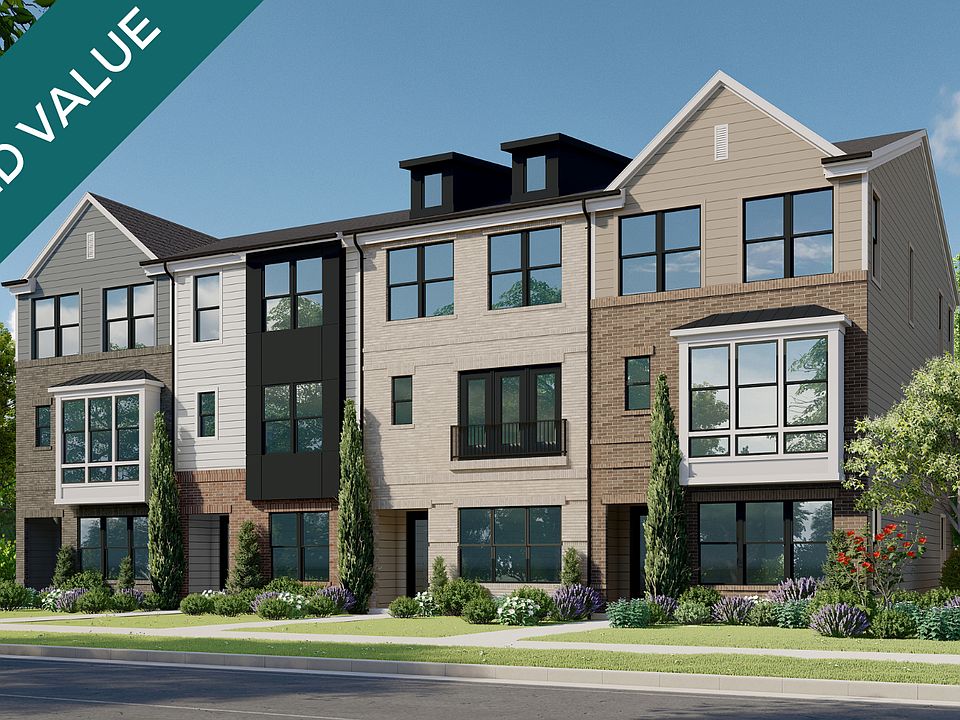Melford Town Center, in a walkable, amenity-rich neighborhood, offers 3 urban-style townhome designs by Mid-Atlantic Builders. Nearby are shopping, dining, entertainment, and community features like parks, trails, an amphitheater, and a lake.