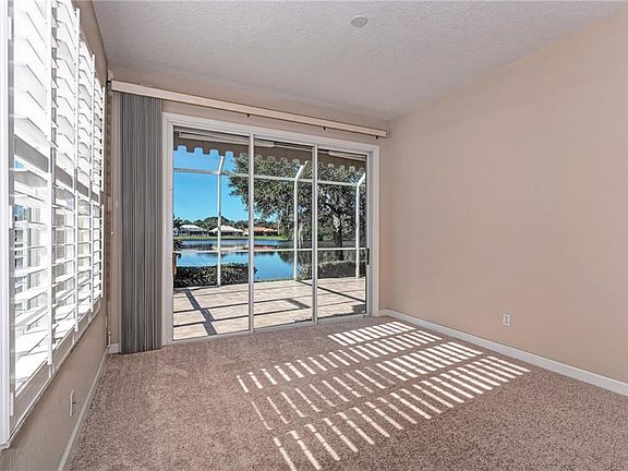 Million $ water views from this villa style home in gated Avalon. A fabulous community in Palm Aire. Popular model with two bedrooms plus den, two baths, two car garage and very large screened lanai overlooking the water. Home has been well cared for and features a large flex space directly off the kitchen that can easily serve as family room, formal dining room or flexible second office. The kitchen is light and bright, very spacious and features a center island. Wake up to beautiful water views from the spacious master suite. The second bedroom with tile flooring is large and conveniently located to the second bath. The interior utility room features a free standing sink and storage cabinetry. Desirable plantation shutters are on all windows and new carpet just installed. Avalon enjoys a back golf cart gate and is just minutes to the optional and private Palm Aire Country Club. The very reasonable community fees include basic cable, lawn maintenance, heated community pool, and private road, exterior repainting every 7 years, roof pressure washing every 3 years, and annual backflow testing. Moments to bustling University Parkway area with the new Whole Foods, fabulous UTC mall, fantastic dining options and of course, just a quick drive to our world famous sugar sand beaches. The lanai and view from this villa are really a must see.. the lake sparkles and teems with wildlife.