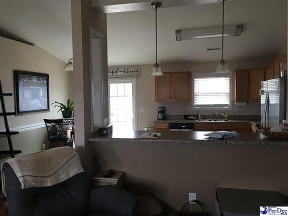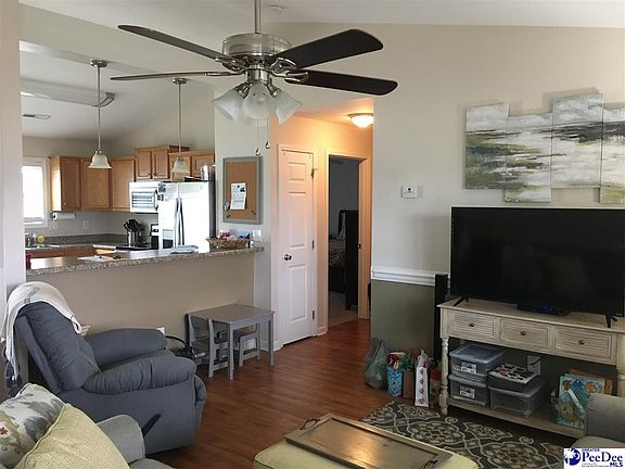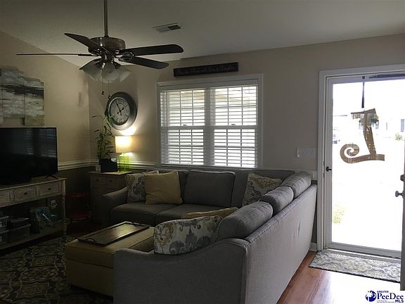 Split floor plan- Vaulted ceiling in living area, dining area and kitchen. Sliding glass door leads to fenced yard and patio. Tile floors in kitchen, dining area, laundry room and bathrooms. Vinyl plank flooring in living area and hallways. Stainless appliances include range, microwave, dishwasher and refrigerator. Chair railing in living & dining area. 5 foot walk in shower with glass shower door. 6 ft vinyl fence. Landscaped. Sodded yard. His & her sinks in master bathroom with huge walk in closet. Linen closet in master bathroom and guest hallway. Cabinet over commode in master bathroom for additional storage. Double closets in bedroom 2 & 3. Breakfast bar. Laundry room cabinet unit will not convey. Shed sold in as is condition. Convenient location to hospitals, medical mall, FMU, Athletic complex at FMU; off Palmetto street, Touchstone Energy commerce City & Freedom Park. Entrance to neighborhood off Freedom Blvd. (off Palmetto Street; Rt.76). Entranceway lined with sod, Palmetto trees and wax myrtle bushes.