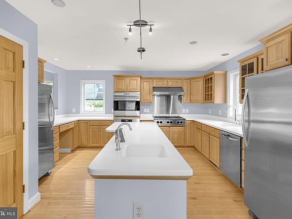 Stunning Colonial with over 4,100 SQ FT of living space and set up for multi-generational living with 6 bedrooms, 4 full baths, and oversized 2-car garage, ideally located just 1 mile from the Purple Line and PG Plaza. Walk to MARC Station, Whole Foods, and Riverdale Park Town Center. The heart of the home is the Chef’s Kitchen, a culinary dream with a premium stainless steel commercial appliance package: BlueStar 6-burner gas cooktop, Viking commercial exhaust fan, double wall oven, full-size refrigerator, separate full-size freezer, stainless steel dishwasher, and deep stainless sink. Designed for both function and style, it also features Corian countertops, decorative glass-front cabinetry, hardwood floors, pendant lighting, and two pantries—perfect for hosting gatherings or preparing gourmet meals. The open dining area flows to a screened-in porch with cathedral ceiling and ceiling fan, creating a seamless indoor-outdoor living experience. Main level offers a living/playroom, family room with hardwood floors, ceiling fan, and new wood-burning fireplace with marble surround and oak mantle, plus a main-level bedroom and full bath with designer tile. Laundry/mudroom includes full-size washer/dryer, deep stainless sink, shelving, and breezeway to the garage. The oversized garage is a workshop dream with A/C, upgraded electric, 220 outlets, air pumps, and fixed stairs to a floored attic for tons of extra storage. Second level features 4 spacious bedrooms, including an expansive owner’s suite that feels like a private retreat, offering a spa-style bath with double-sink vanity, decorative tile, and ample space for a seating area or reading nook. The hall bath also has double sinks and stylish tile. An open loft area is ideal for a home office or study. The finished top level includes a 2nd family room, full bath with designer finishes, and an additional room with wet bar and cabinetry—perfect for guests or extended family. Additional highlights: decorative iron stair railings, dual HVAC systems, leased solar panels, vinyl fencing, fenced front and backyard with retaining wall, shed, and conditioned crawlspace with concrete floor for extra storage. This home blends quality craftsmanship, luxury touches, and exceptional space in a prime walkable location—truly a rare find.