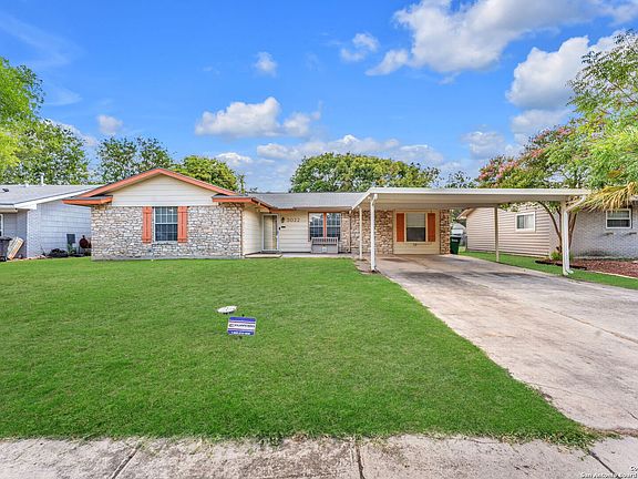 Welcome to this move-in ready gem nestled in the desirable Park Village neighborhood! This spacious 4-bedroom, 2-bathroom home offers modern updates throughout and a thoughtfully designed layout perfect for both everyday living and entertaining. Step inside to find high ceilings, updated lighting, and luxury vinyl plank flooring in the main living areas, with plush carpet in the bedrooms for added comfort. The open-concept kitchen features recessed lighting, stainless steel appliances, a gas range, a sizable pantry, and custom cabinetry. The adjacent dining area and large utility room add functionality and charm. Enjoy multiple living areas that provide flexibility for relaxing, entertaining, or working from home. Both bathrooms have been tastefully renovated, and all four bedrooms are generously sized and comfortable. Out back, you'll find a flat, usable yard shaded by mature trees, a storage shed, and a brand-new patio with a pergola-perfect for outdoor gatherings or quiet evenings. Home offers solar that definitely helps to lower that electric bill. The four-car carport provides ample parking space and convenience. Located just minutes from I-35, I-10, and Loop 410, with easy access to shopping, dining, parks, and more, this beautifully updated home checks all the boxes.