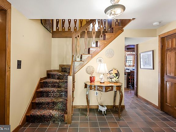 Are you looking for a FARM in Mt. Laurel?! Welcome to this HIDDEN GEM tucked away with 8.2 acres “NJ farm assessed’ land and 3406+ SQ Ft home with 4 bedrooms and 3/1 bathrooms. As you drive down the LONG PRIVATE tree lined lane you will come to a beautiful home with circular drive, side facing garage and lovely stone side porch with fireplace. Enter into the spacious foyer with open staircase and slate floor with radiant heat. The living room features a wood-burning fireplace, elegant slate floor, French door to stone porch, pocket doors to the family room. This room has a private entrance and spiral stairs to a Private ensuite bedroom! Also, you will find new neutral carpeting, wood-burning stove. Just off the living room, is also a beautiful custom library that really brings the Old World feeling to this home! Features include an antique fireplace mantel, white oak coffered floor to ceiling paneling and a charming reading nook with quatrefoil details. The dining room overlooks the living room and kitchen and features tongue and groove wood ceiling, a wall of Anderson windows and door to brick patio. The kitchen features cherry wood cabinetry, granite countertops, built-in range, stainless appliances. The spacious butler’s pantry adds more “Old World” charm with custom oak cabinetry, pantry closet and entry from the 2 car garage with storage room. On the 2nd floor you will find an expansive primary suite with sitting area, more custom coffered paneling, coffered ceiling with quatrefoil design, fireplace/antique mantel, HW flooring and spacious walk-in closet. The primary bathroom features an antique vanity, large shower, and antique claw foot tub. Another unique feature in this home is the 2nd floor study with hidden door in the bookcase wall that leads to the 2nd bedroom room. The 3rd bedroom has a custom sliding bookcase to a walk-in closet. Completing the second floor are a hall bathroom and a private ensuite 4th bedroom accessed from the spiral stairs from the family room including carpeting, walk-in closet, and full bathroom. The 7 acres of farmland approved for the NJ Farm Assessed Act includes a barn divided into a large workshop with office, (heat, AC unit and well water for animals) and separate area for animals, hay shed, poultry house, and storage sheds. Because of the NJ Farm Assessment, the taxes on this 7 acre portion of the property is $27/year. The $13,031 property taxes are for the house and its 1.2 acre lot. Seller owned solar panels, “slate style” roof (2006), new electrical panel, new 2 zone HVAC and much more! This property and magnificent home are so unique and definitely a “MUST SEE”! You won't believe how quiet and private this property is!