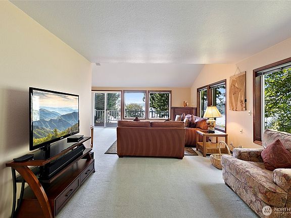 Don’t miss this charming Cooper Point waterfront home with breathtaking views! Inside, you'll find a grand entry w/ soaring ceilings, a cozy living room with vaulted ceilings and a gas fireplace, plus a formal dining room. The spacious kitchen includes a pantry, and the family room is perfect for relaxation. With 2 generous main floor bedrooms, a full bath, & a 3/4 bath/mudroom, this home offers both comfort and style. Upstairs, the primary suite is a retreat w/ a 5-piece bath, walk-in closet, private sitting area, and an enclosed deck overlooking the water. Set on 1.4 acres, enjoy a swim spa, lush landscaping, a path to your private beach, & a storage shed for your beach gear. An oversized garage and plenty of parking complete the package!