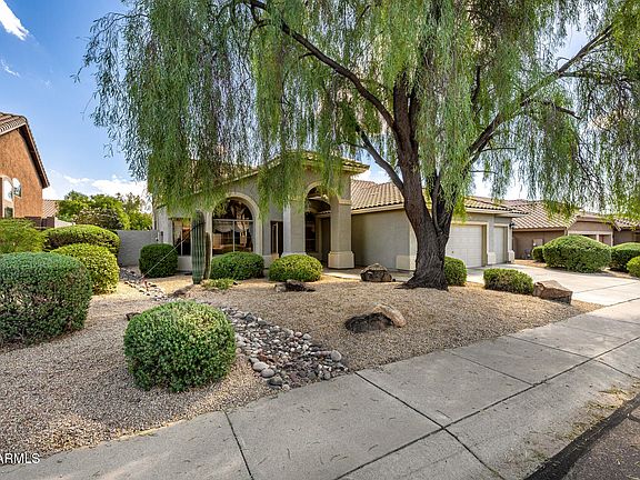 Look no further - this gorgeous 3-bedroom, 2-bathroom home with a 3-car garage and low-maintenance desert landscaping is the perfect blend of style and comfort. Step inside and be greeted by a bright and spacious living & dining room with soaring vaulted ceilings, abundant natural light, and a warm, neutral palette. The inviting family room with a cozy gas fireplace makes it easy to relax or entertain. The chef's kitchen is a dream, featuring stainless steel appliances, gas range, recessed lighting, an island with breakfast bar, ample cabinetry, and a sunny breakfast nook- perfect for morning coffee. Retreat to the oversized primary suite, offering plush carpet, a spa-like ensuite with dual sinks, soaking tub and separate shower, and a large walk-in closet. Enjoy Arizona living at its finest in the backyard oasis with a covered patio, pool, and plenty of space to gather with family and friends. This Tatum Ranch gem has it all - and it won't last long. Don't miss your chance - act fast!