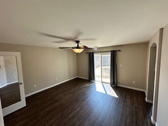 Step inside to find a spacious open floor plan with abundant natural light, freshly painted interiors, and brand-new flooring throughout. The kitchen is well-appointed with plenty of cabinet space and a functional layout that flows seamlessly into the dining and living areas. The primary room features a private bathroom and generous closet space, while two additional bedrooms provide comfort for family or guests. The split-wing design provides added privacy, with the primary suite thoughtfully separated from the additional bedrooms.