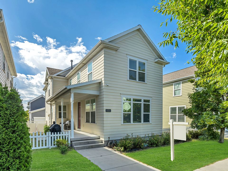 Welcome to this charming Daybreak home, where you'll find one of the most sought-after floorplans around. This beautifully upgraded home features gorgeous bamboo flooring and an open-concept main level that includes a welcoming living room, a cozy dining area, a convenient half bath, and a modern kitchen with stainless steel appliances, quartz countertops, a stylish tile backsplash, and plenty of natural light. Upstairs, there are three spacious bedrooms and a flexible loft space. The generous primary suite offers two walk-in closets and a spa-like bathroom with dual sinks, a relaxing soaking tub, and a separate shower. Enjoy peaceful evenings on the covered front porch or take advantage of additional storage in the large cold storage room below. The home has plenty of shared space perfect for children and pets. Plus, residents can enjoy access to Daybreak's fantastic amenities, including pools, parks, trails, a gym, sports courts, beautiful gardens, free internet, and more-all for just $140/month. Square footage figures are provided as a courtesy estimate only and were obtained from __County Records__ . Buyer is advised to obtain an independent measurement.