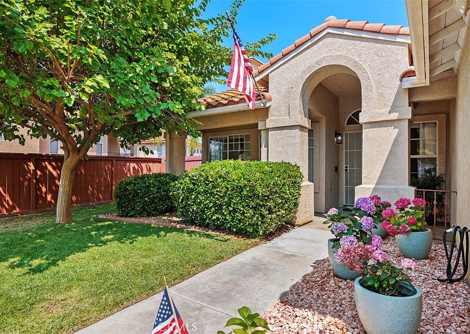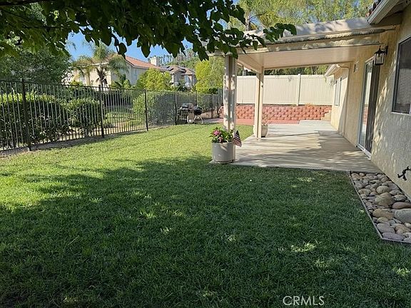 In 2020, a new concrete patio was poured in the backyard and alongside the house, extending to the front sidewalk to provide additional parking space. On one side of the house, double fence gates offer convenient access to the backyard. An Alumawood patio cover creates a comfortable space for summer gatherings and barbecues. The wrought iron fencing at the back of the house allows for uninterrupted enjoyment of the adjacent green open space, thereby enhancing the yard's spacious feel. And there is a shed in the side yard for additional storage of your yard tools!