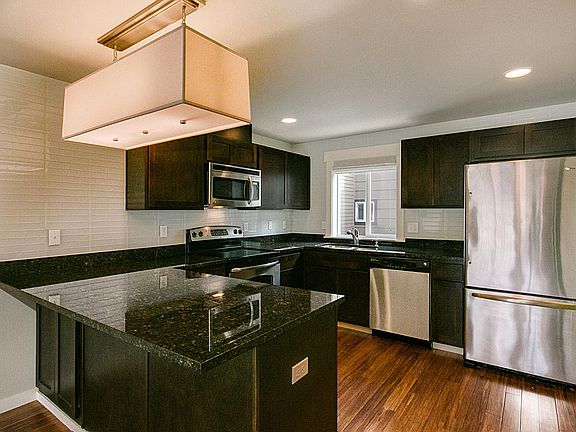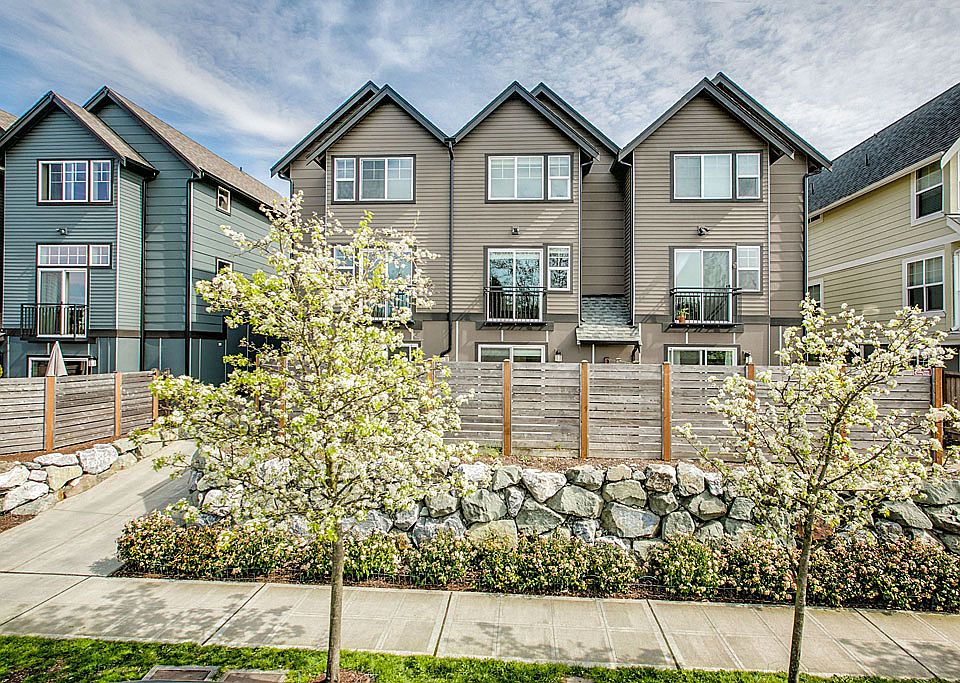 Better than new townhome. Built in 2010 with custom improvements. Modern finishes and lighting. Bamboo hard woods on main and recently installed upper floors. Custom glass tile in bathrooms and kitchen. Stainless steel appliances, granite countertops. High end millwork and vaulted ceilings. Finished patio space, fully fenced and pet-friendly. Lots of natural light. Pristine condition. Nearby shopping, restaurants, transit, playfield and freeway.