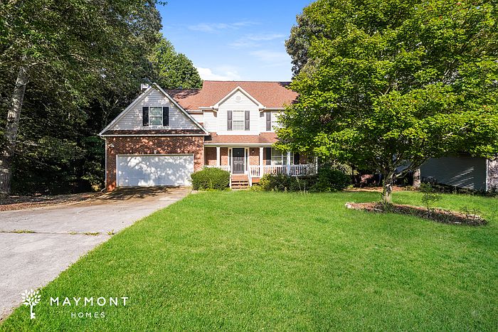 Nestled among mature trees, this impressive 4-bedroom, 3.5-bathroom home blends timeless curb appeal with the charm of a welcoming front porch and an expansive yard. The classic brick facade and inviting entryway set the tone for a property that offers both style and space, with a private driveway leading to a two-car garage.