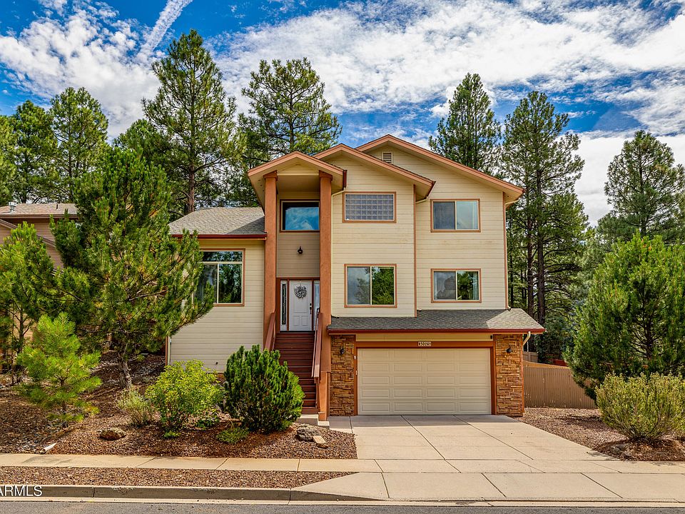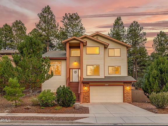 Located in sought-after Ponderosa Trails, this 4-bedroom home offers space, comfort, and views. With two living rooms, a formal dining room, a main-floor office, A/C, and a flat driveway, it blends function and convenience. Mountain peaks are framed from your living room, while outside you'll find neighborhood access to the Flagstaff Urban Trail System and a community park. This home captures the Flagstaff lifestyle at its best. SELLER WILL PAY OFF SOLAR WITH ACCEPTABLE OFFER, IMMEDIATE SAVINGS!!!