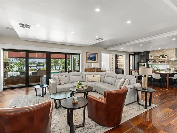 Welcome to “The Sounding:” a captivating lakefront estate residence with inviting water views and a serene and peaceful setting offering the best of Florida living. Tucked inside this privately gated and intimate enclave of estate homes across the street from Windermere Prep, Sawyer Sound offers an escape from the ordinary and this showplace residence sets the standard for lakefront living. A welcoming entrance showcases style and elegance with a massive Great Room as the lake and massive saltwater pool beckons beyond. An impressive chef’s kitchen with island and stainless appliances are perfectly fitted for entertaining family and friends. Highlights include rich hardwood floors throughout plus Thermador appliances including 6-burner plus griddle stove and hood, custom-built cabinetry, hidden walk-in pantry, expansive built-in China cabinet, and an especially large dining room with picturesque window. Opposite is a primary retreat with sitting room, spa-like bath with soaking tub, walk-in shower, toilet closet, and separate den. Bathrooms just updated. Upstairs are four bedrooms, each with a private full bath, plus gathering room and separate gaming room. Distinct outdoor spaces are crafted for year-round enjoyment: covered cabana with bar and gas grill plus dining space, mammoth saltwater pool with hot tub, and outdoor family room with fireplace and disappearing screens. Boat house with boat lift puts your water toys within reach and offers easy access to Little Lake Sawyer. Also, enjoy nightly Disney World fireworks viewing from the dock. Boat, trailer, kayaks, and all furniture available for purchase separately. Home is fitted with automatic Generac generator plus 3-car garage (one single and one double). Home may be sold furnished if desired.