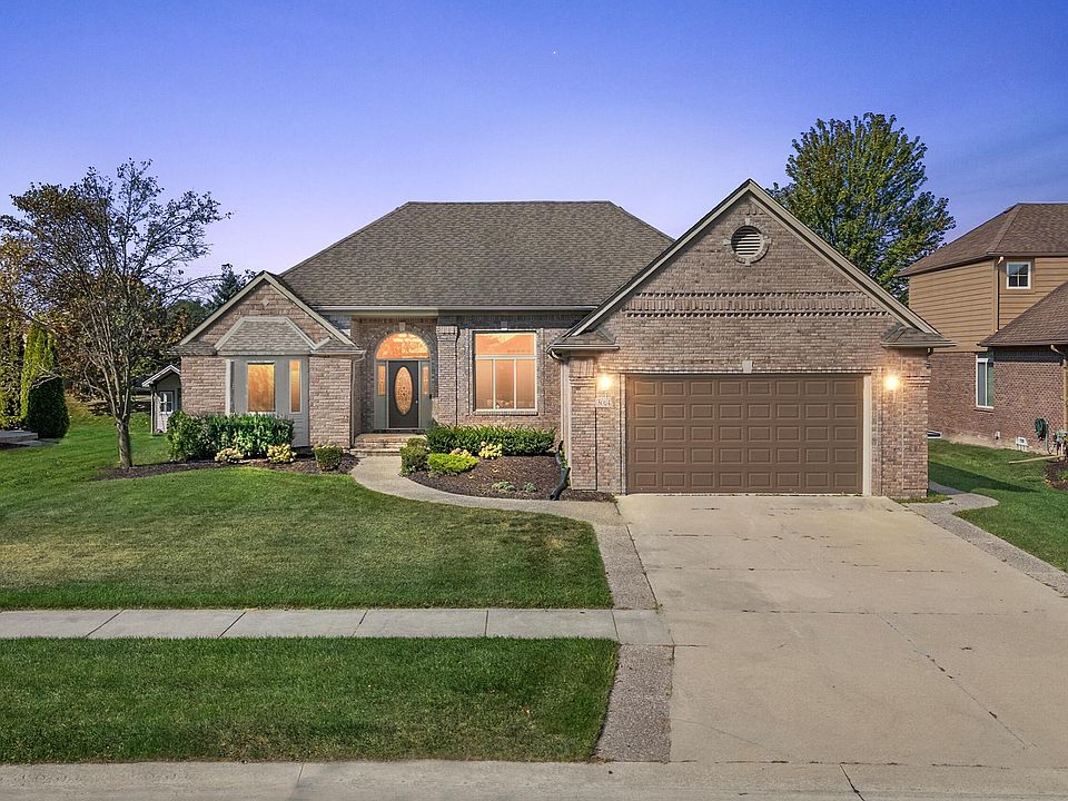 This beautifully remodeled 2,368 sq. ft. brick ranch offers a thoughtfully designed single-level layout with 3 bedrooms, 2.5 bathrooms, and a versatile den/library. Hardwood flooring runs throughout, complemented by ceramic tile and granite finishes in the kitchen and bathrooms. Sunlight fills the great room, highlighted by vaulted ceilings, recessed lighting, and a cozy gas fireplace. The granite kitchen is ideal for both everyday living and entertaining, featuring an island with snack bar seating, pantry, and stainless steel appliances. A convenient first-floor laundry adds functionality, while the expansive open basement is prepped for full-size living and future customization. Additional highlights include access to a private community saltwater pool. Perfectly situated near shopping, dining, parks, and expressways—just 10-15 minutes from everything—this move-in ready home delivers comfort, convenience, and lifestyle in one complete package.
