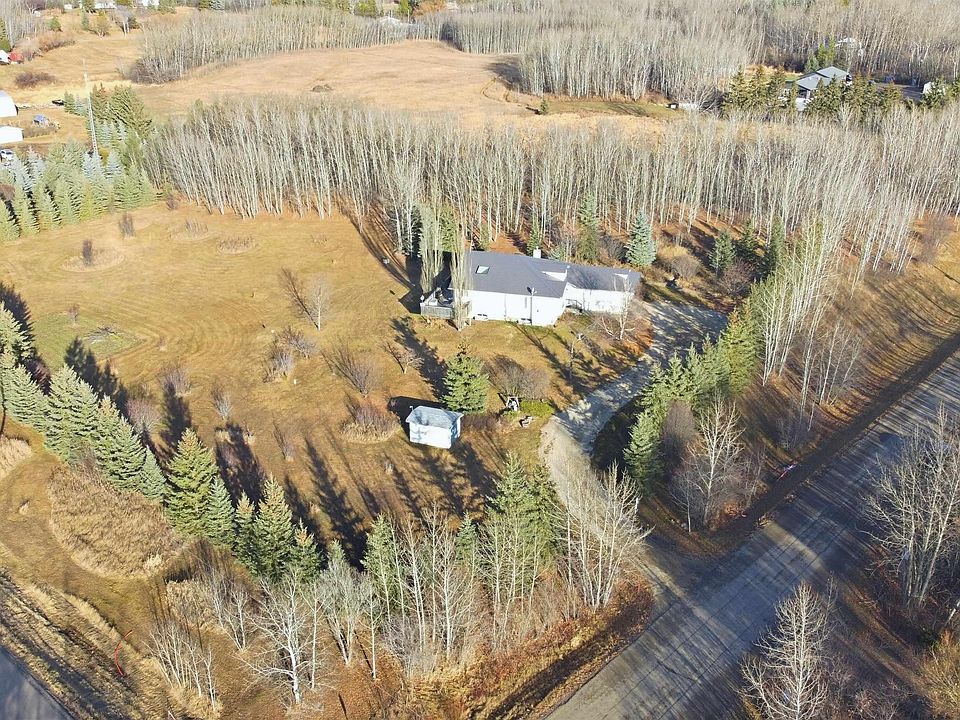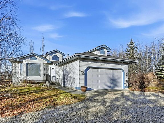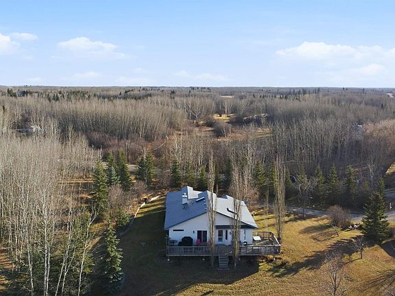 STUNNING PRIVATE 3+ ACRE LOT JUST 10 MINUTES FROM BEAUMONT!! Beautifully treed & nestled in Scottsdale Estates, find this well-maintained bungalow. Sunlight throughout the house w/ skylights & large windows. Gorgeous gas fireplace in living rm w/ imported stone features (provides ample heat in the winter). Kitchen has granite/quartz, plenty of cabinets, wall oven & gas stove. Primary retreat w/ spa-like ensuite (enjoy a soak) & deck access! Main floor complete w/ 2nd bdrm, 2nd bthrm & laundry rm. Basement has in-floor heating, recreation/2nd living space, huge 3rd bdrm, full 3pc bthrm & cold storage/storage space. Enjoy quiet summer evenings on the deck w/ sunset views. Plus deck wraps around house to enjoy those early morning sunrises. Huge evergreens border the property, apple trees, firepit area & storage shed. Addtl features include NEW METAL roof, hardwood floors (approx 6 years old), newer hot water tank (approx 5 years), newer washer/dryer, heated oversized garage, central vac, BBQ gas line & more!
