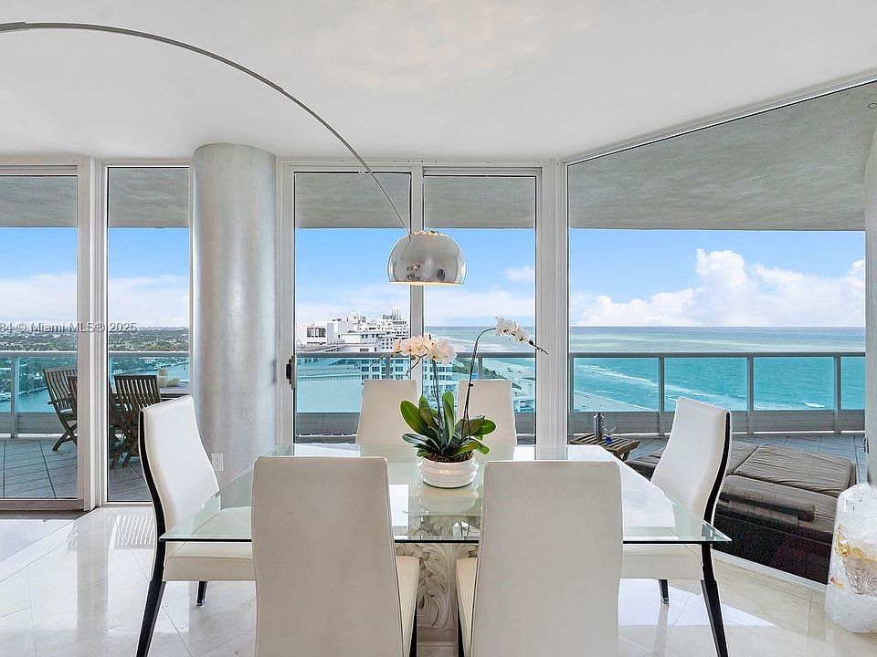 Experience the epitome of Miami living with beachfront breathtaking sunset and sunrise views!! This luxurious boutique building on millionaires row, boasts only two residences per floor, offering panoramic ocean, intracoastal & city views!! The sleek remodeled kitchen features top-of-the-line appliances and a wine cooler. The split floor plan and den can easily be converted into a third bedroom. Eloquently remodeled bathrooms, with every detail designed for relaxation. Residents enjoy direct ocean access, beach service, concierge services, 24-hour security, valet parking, an exercise room,heated pool, jacuzzi, and club room. This prime location is mere minutes from South Beach, Bal Harbour shops, Soho House, Faena, and the Fountainbleau hotel. This unit is the best-priced square footage in the building!! Private boat docks available for lease. A Miami dream.