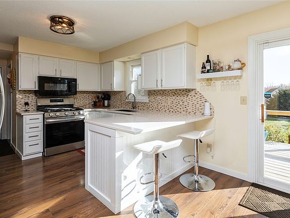 Beautiful, well maintained 2 story home with many updates. Kitchen boasts white cabinets & quartz countertops, the high end appliances are about a year old including a gas range. The dining space is large enough for a table to seat 6 looking into the living room with a wood burning fireplace. New wood floors throughout the main floor. Upstairs has all three bedrooms, the full shared bathroom has been updated to include a vanity with plenty of storage, bluetooth led light exhaust and deep tub. The primary has a walk-in closet and 3/4 bath. Downstairs you have a 2nd family room, another finished room with a large window which could be used as a 4th bedroom and unfinished laundry/utility room. The roof was replaced in 2021, windows are white double hung vinyl, the home's exterior is wrapped with maintenance free metal siding, 2 car attached garage is heated for year round use. Outside you will enjoy a beautiful large yard with mature landscaping full of flowering perennials, including a butterfly garden you will enjoy while sitting on the deck which spans the length of the home and is perfect for entertaining. Tucked in a corner of the yard includes a large shed which also has electricity for a great Man Cave or She Shed.