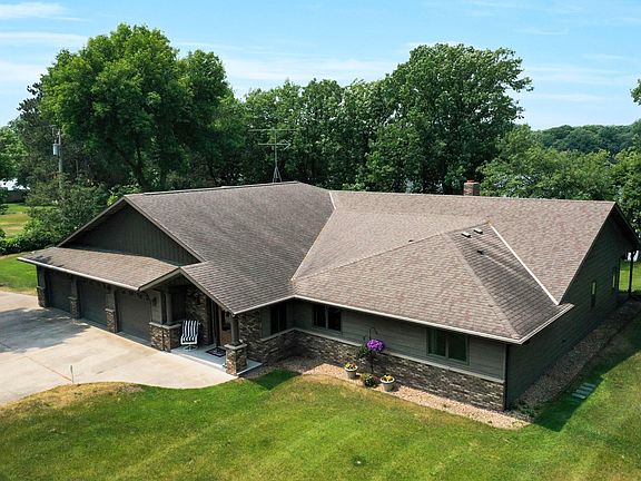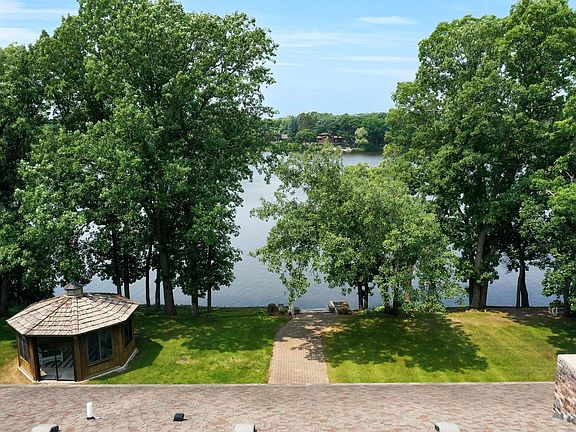 Welcome to luxury waterfront living in this gorgeous, one level 3BR offering an exquisite, over 1.5 Acre park-like lot and over 200 Ft of water frontage! Breathtaking upon entry into the expansive foyer with sitting room you're greeted by a stunning water view through the great room. The great room features tongue & groove oak ceiling, wood burning brick fireplace and a soaring vault. This kitchen will surpass your expectations with large built-in buffet, huge dining area (again, these views are amazing!!), an incredible center island and tons of pantry space, not to mention gorgeous granite tops & stainless steel appliances. A whirlpool primary suite features Built-Ins, Walk-In Closet & zoned heat & A/C (also found in the 4 season sunroom!) Custom closet in BR 2, Walk in Closet in BR3, surround sound, 3 zoned gas hot heat, insulated, heated 3 car attached Garage with water & floor drains, insulated det Garage, Storage shed, gazebo, 42' covered porch and so much more! A MUST SEE!!